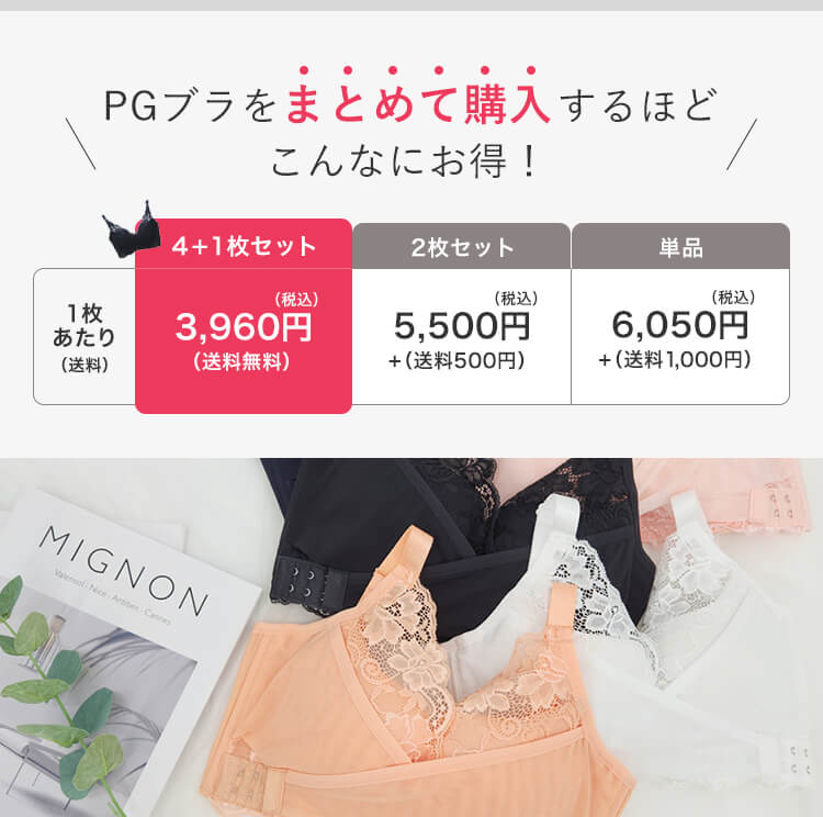 PGブラはブラック、ピンク、ホワイト、ネイビーの